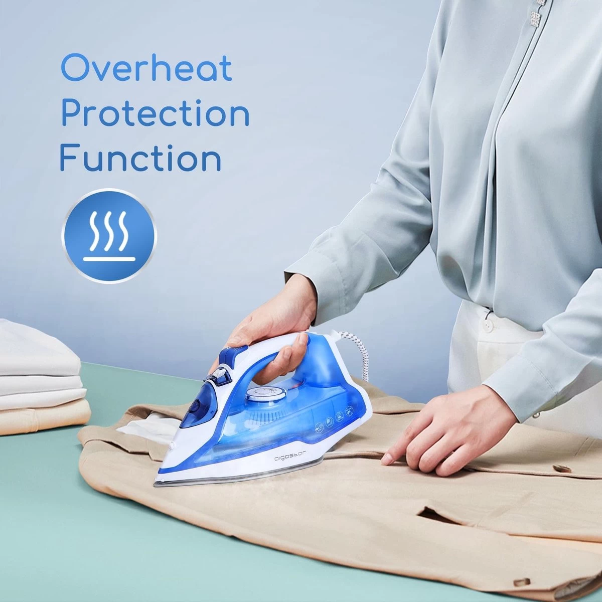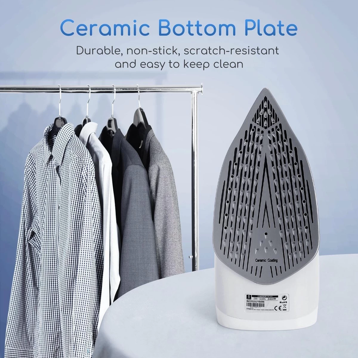 De Aigostar Smooth stoomstrijkijzer is speciaal ontworpen voor al jouw dagelijkse strijkwerkzaamheden. Dankzij het hoge vermogen van 2400W warmt hij snel op. In combinatie met de keramische zoolplaat worden kreuken in je kleding eenvoudig strakgestreken zonder water- of roestvlekken. Dankzij het waterreservoir met een inhoud van 210 ml hoeft de Smooth maar één keer gevuld te worden voor een dagelijkse strijkbeurt.