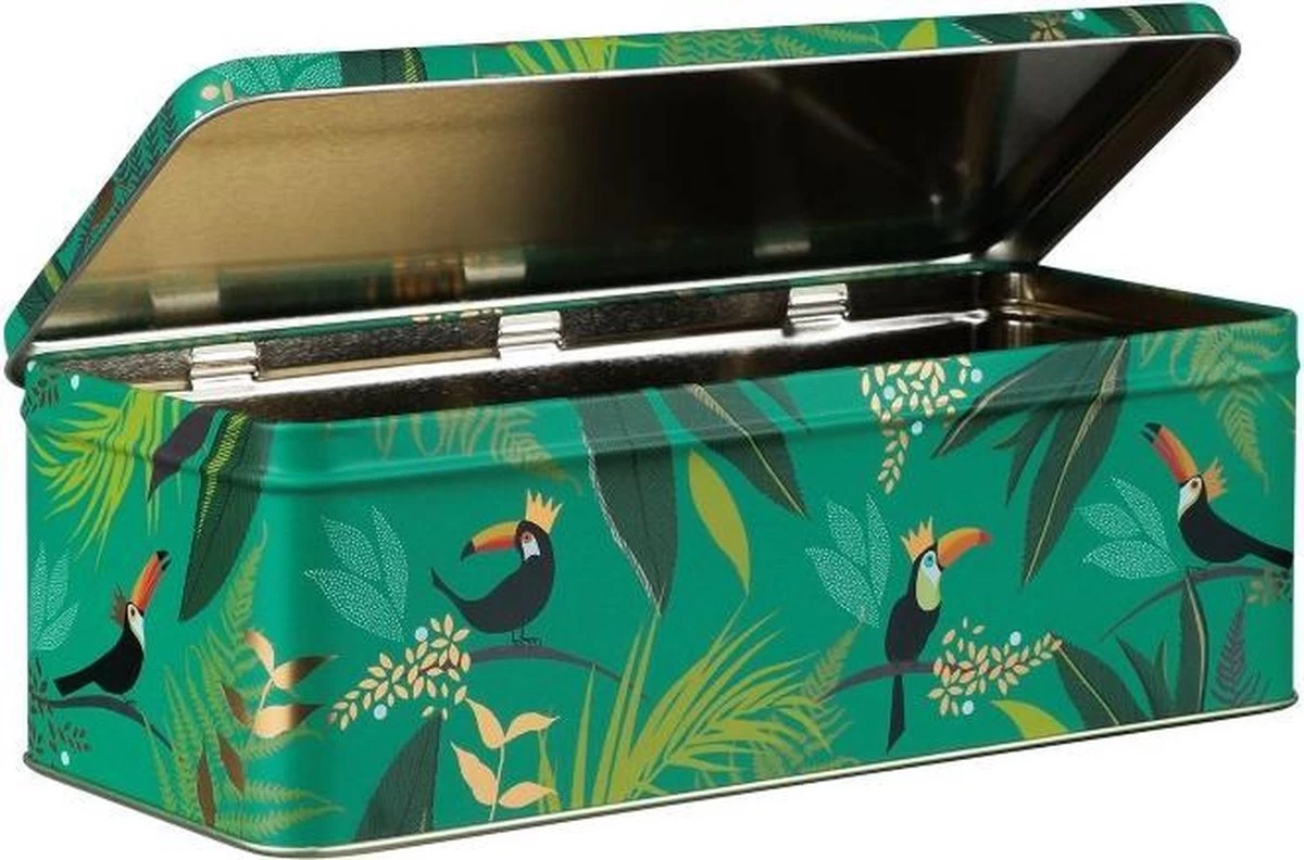 Het bewaarblik is prachtig afgewerkt met gouden details.