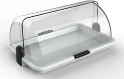 Deze kunststof broodtrommel (afmeting: 38*26*17cm) heeft een transparante deksel met een witte bodem en zwarte accenten. Deze trommel is naast het bewaren van brood, koek en taart ook prima geschikt voor het presenteren van hapjes zodat deze niet te snel “oud” worden. Het merk Biesse is een Italiaans product dat bekend staat om zijn vooruitstrevend design en onderscheid zich door uitstekende kwaliteit. Productie is geheel in Italië