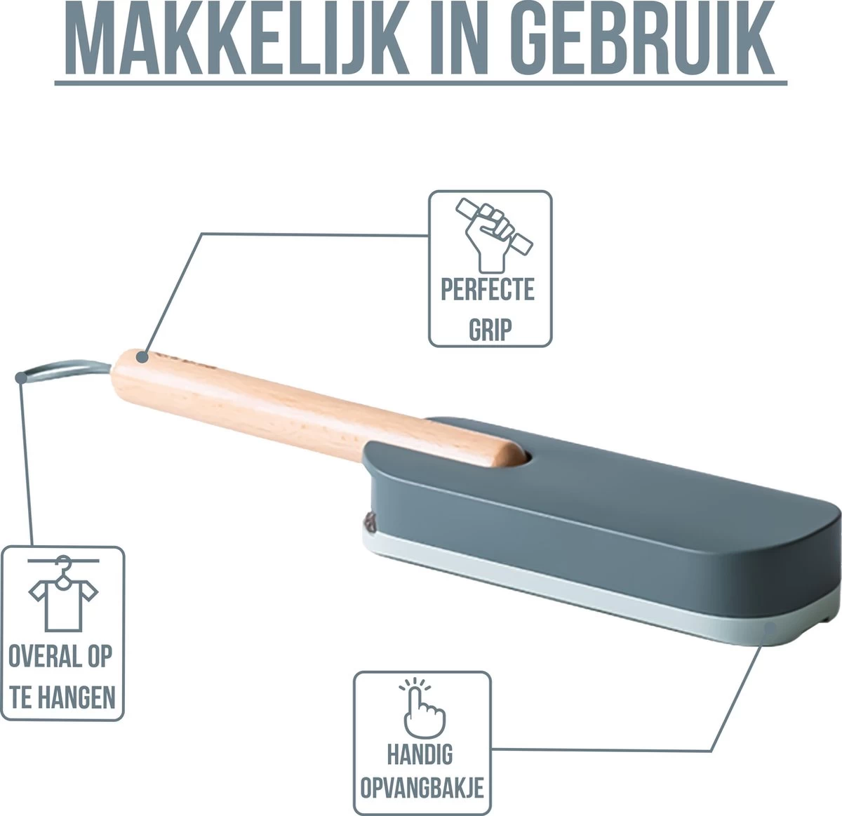 Deze pluizenverwijderaar is speciaal ontworpen om niet op te bergen. Het strakke design zorgt ervoor dat het een lust voor het oog is en past bij ieder interieur. Het beukenhouten handvat is voorzien van een (siliconen) lusje, zodat de borstel na gebruik aan een haakje opgehangen kan worden aan de muur.