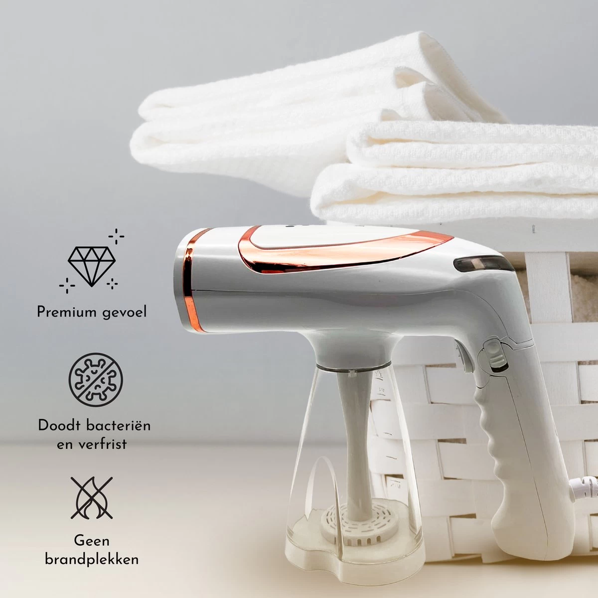 De handstomer heeft een compact formaat van 17x9x18 cm en is dus makkelijk vast te houden. Het ligt lekker in de hand en geeft een premium gevoel. Het moderne, compacte formaat is ontzettend handig als je op vakantie gaat. Stop de kledingstomer met een gewicht van 0,8kg in je koffer en geniet van kreukvrije kleding op je vakantieadres. Maar ook thuis is het fijn om geen strijkplank en strijkijzer op te hoeven bergen. Je bergt de stomer gemakkelijk op in een la!