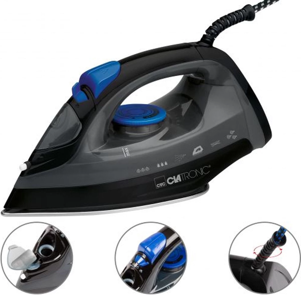 Clatronic DB 3703 – Stoomstrijkijzer – RVS Zoolplaat – Zwart