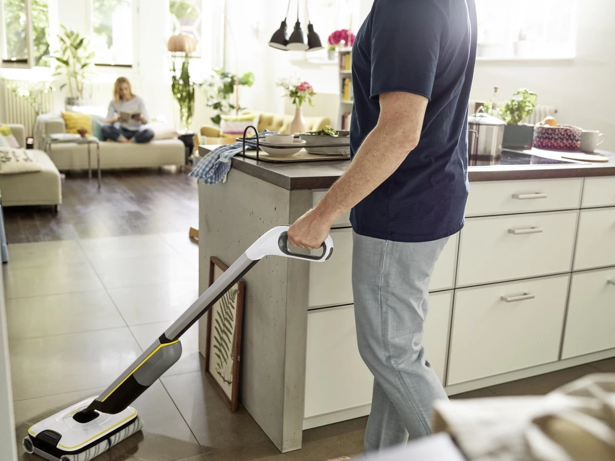 Je vloer is je podium. Met onze FC 7 Cordless laat je jouw vloer glanzen – en dat doe je met een ongeveer 20 procent diepere en krachtigere reiniging dan met welke poetsdoek dan ook*. In plaats van vuil heen en weer te vegen, pakken de microvezelrollers met zelfreinigende functie het eenvoudig op en transporteren het vuile water naar een aparte tank. Er blijft heel weinig restvocht op de vloer achter, wat betekent dat de show al na 2 minuten kan doorgaan!