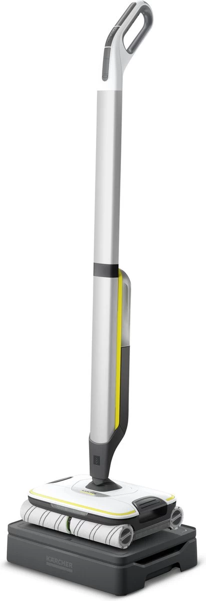 De snoerloze Floor Cleaner FC 7 van Kärcher vangt in één stap zowel droog als nat alledaags vuil op. Je hoeft niet meer te stofzuigen voordat je gaat dweilen, wat de helft van de tijd bespaart *. De technologie met vier rollen en tegenrotatie maakt snelle en effectieve reiniging mogelijk met een hoge vuilverwijdering en glijdt soepel over vloeren. Zelfs haar wordt probleemloos opgepikt dankzij het haarfilter. Vloeren zijn tot 20% schoner dan met conventionele moppen ** – tot aan de rand. Het gedoe met het slepen van een emmer behoort tot het verleden, aangezien de vloerreiniger zowel een schoonwatertank als een afvalwatertank heeft. Ook is er geen contact meer met vuil, omdat de rollers constant worden bevochtigd met vers water en het vuile water rechtstreeks in de afvalwatertank terechtkomt. De watertoevoer en de rotatiesnelheid van de rollen kunnen in twee reinigingsmodi worden aangepast aan de vloer. Er is ook een boostfunctie om hardnekkig vuil te bestrijden. De accuduur is 45 minuten, genoeg om een ​​oppervlakte van ongeveer 135 m² schoon te maken. Het apparaat is geschikt voor alle harde vloeren (tegels, parket, laminaat, PVC, vinyl). Deze Premium versie wordt standaard geleverd met een extra set (steen)rollers en 500 ML universeel reinigingsmiddel. Bovendien is het apparaat voorzien van praktische ledverlichting bij de rollers voor nog meer schoonmaakgemak.