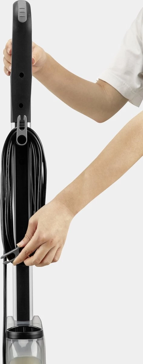 Ergonomische, effectieve reiniging met volledig vloercontact, ongeacht de lengte van de gebruiker, dankzij het flexibele mondstuk.