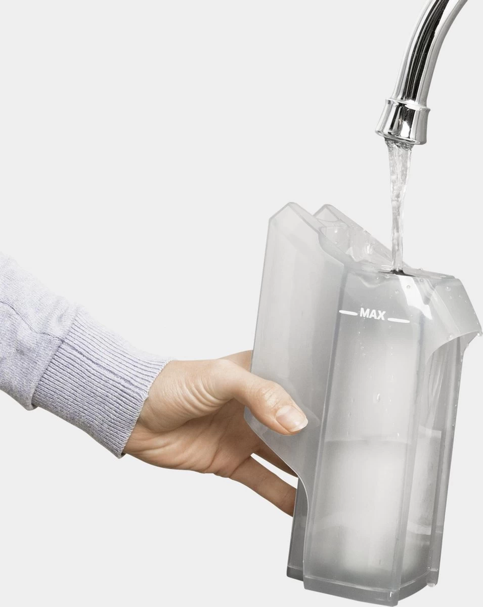 Dankzij het slimme ontkalkingspatroon wordt het water automatisch ontkalkt. De afneembare tank is altijd gemakkelijk te vullen – voor continue stoom zonder je werk te onderbreken.