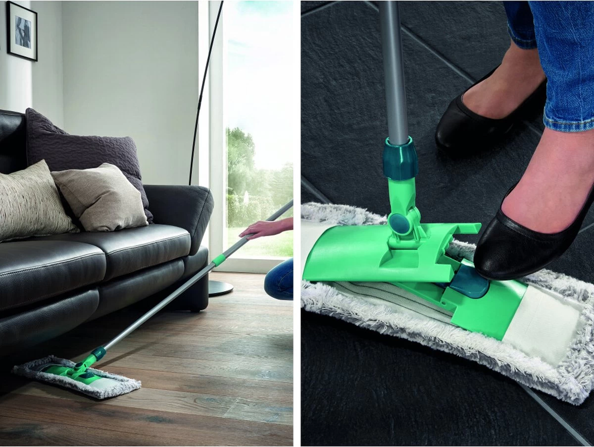 De vloerwisser is voorzien van klemmen, zodat de doek in een handomdraai kan worden vervangen.Bediening biedt ook veel comfort: met zijn wisbreedte van 42 cm is de wisser ideaal voor het reinigen van grote oppervlakken. De all-roundsteelmaakt effectieve reiniging in kronkelige lijnen mogelijk en wentelt moeiteloos de tafel en kastpoten. Voor de rugvriendelijke werkhouding kan de steel worden verlengd van 75 tot 130 cm.