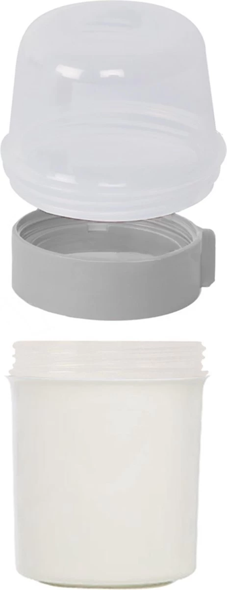 De yoghurtbeker bestaat uit twee losse bakjes die aan elkaar gedraaid kunnen worden tot één geheel met de deksel als tussenschot. Bewaar in het ene bakje bijvoorbeeld de yoghurt en in de andere de muesli zodat het knapperig blijft.