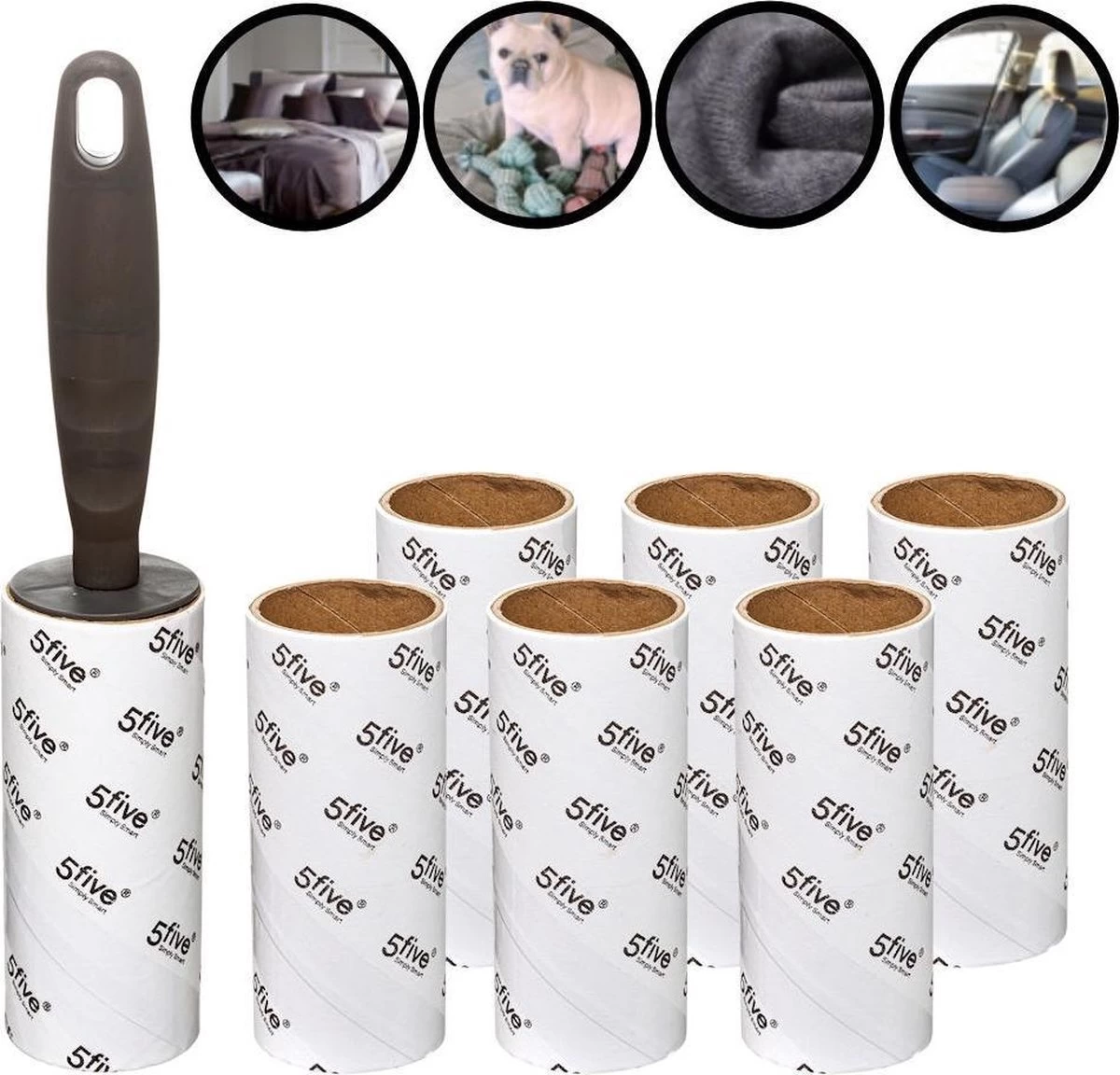 De kleefroller is voorzien van een zwarte handgreep met daarop reeds 1 kleefrol, Maar wordt geleverd Inclusief 6 extra stuks witte papierrol ontpluizer rollen. (Dus deze set bestaat uit: 1x handgreep en totaal 6 ontpluis rollen)
