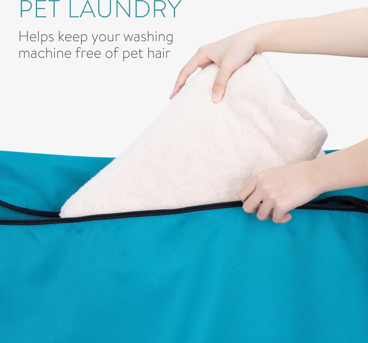 - GROOT FORMAAT: De waszak is zeer ruim en daarmee geschikt voor dekens, handdoeken, beddengoed, speeltjes, knuffels en kussens van je hond, kat, knaagdier, paard of pony. Controleer wel eerst of het voorwerp geschikt is voor de wasmachine.