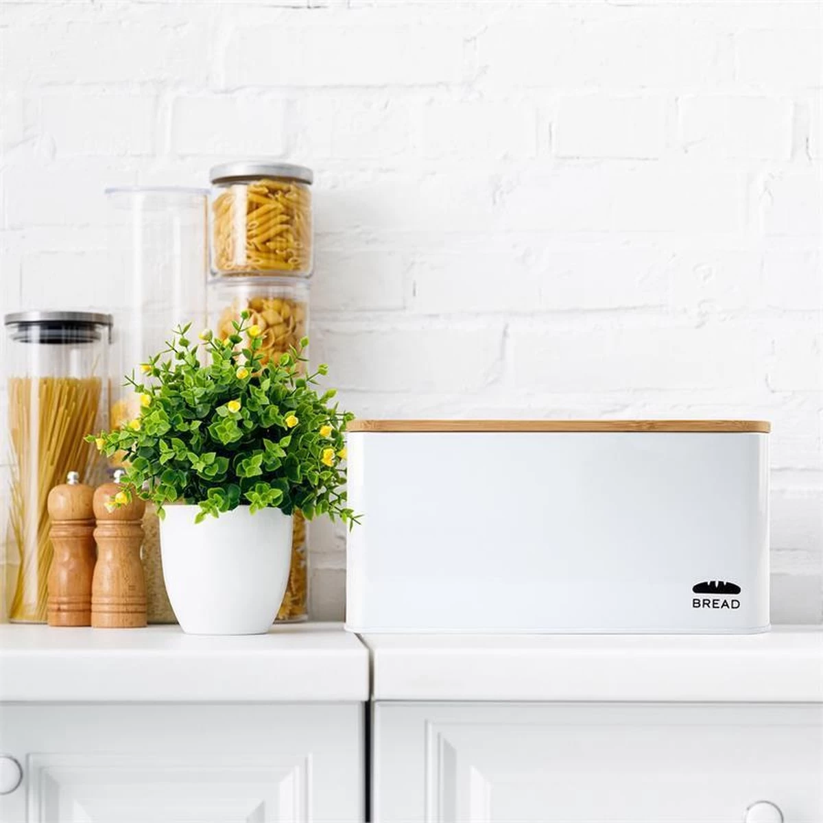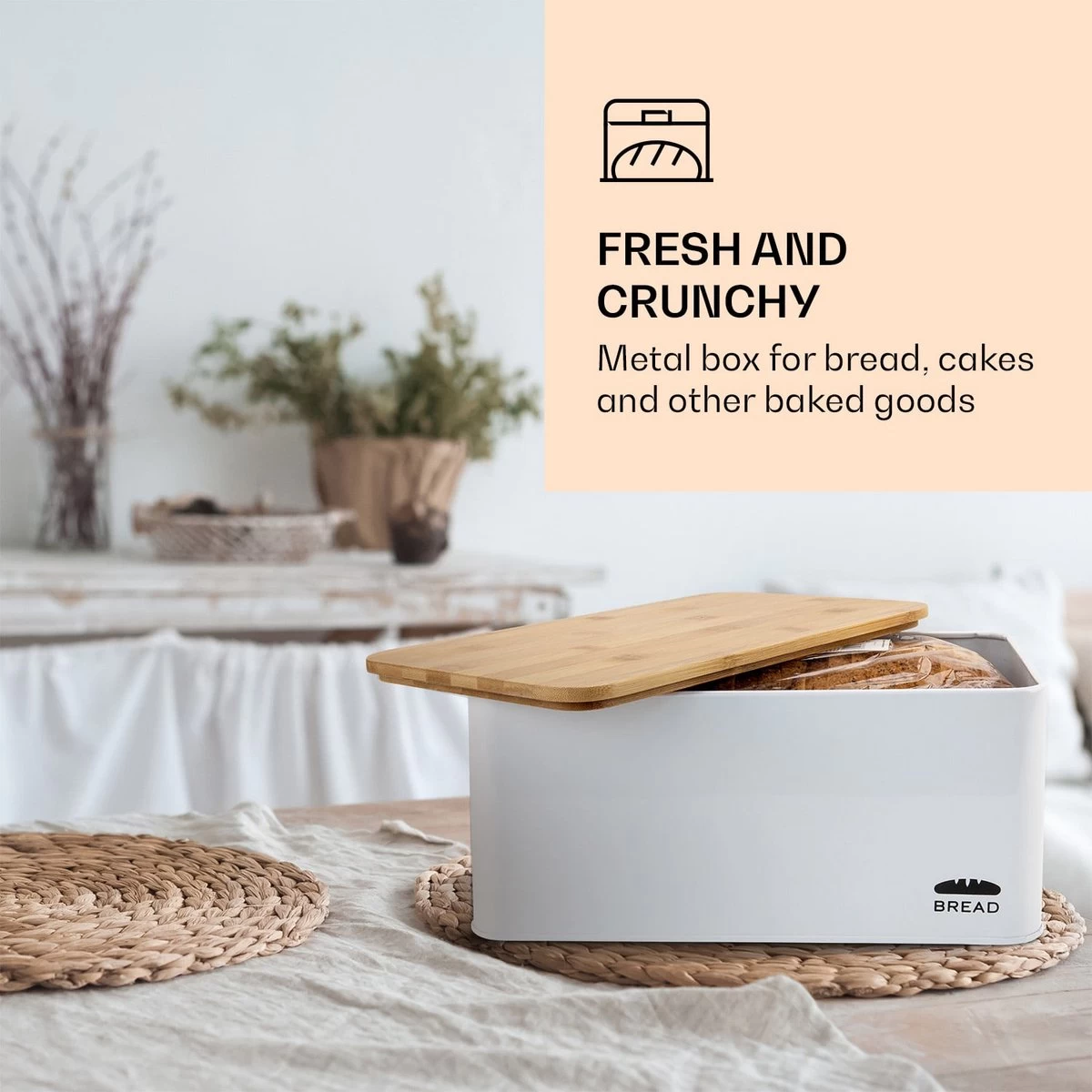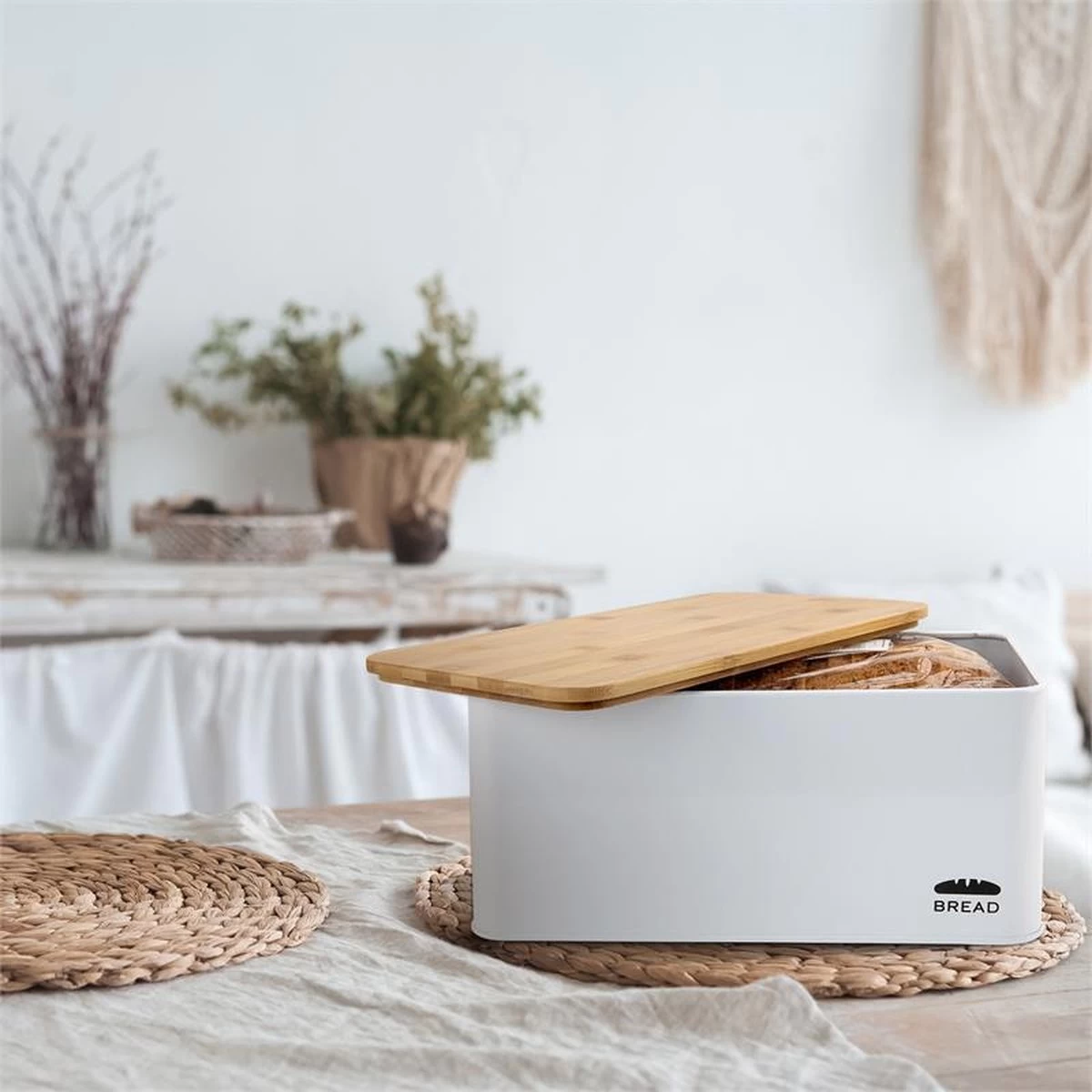 Oklahoma Broodtrommel Metaal 35,5×15,5×23 Cm Bamboe Deksel Snijplank