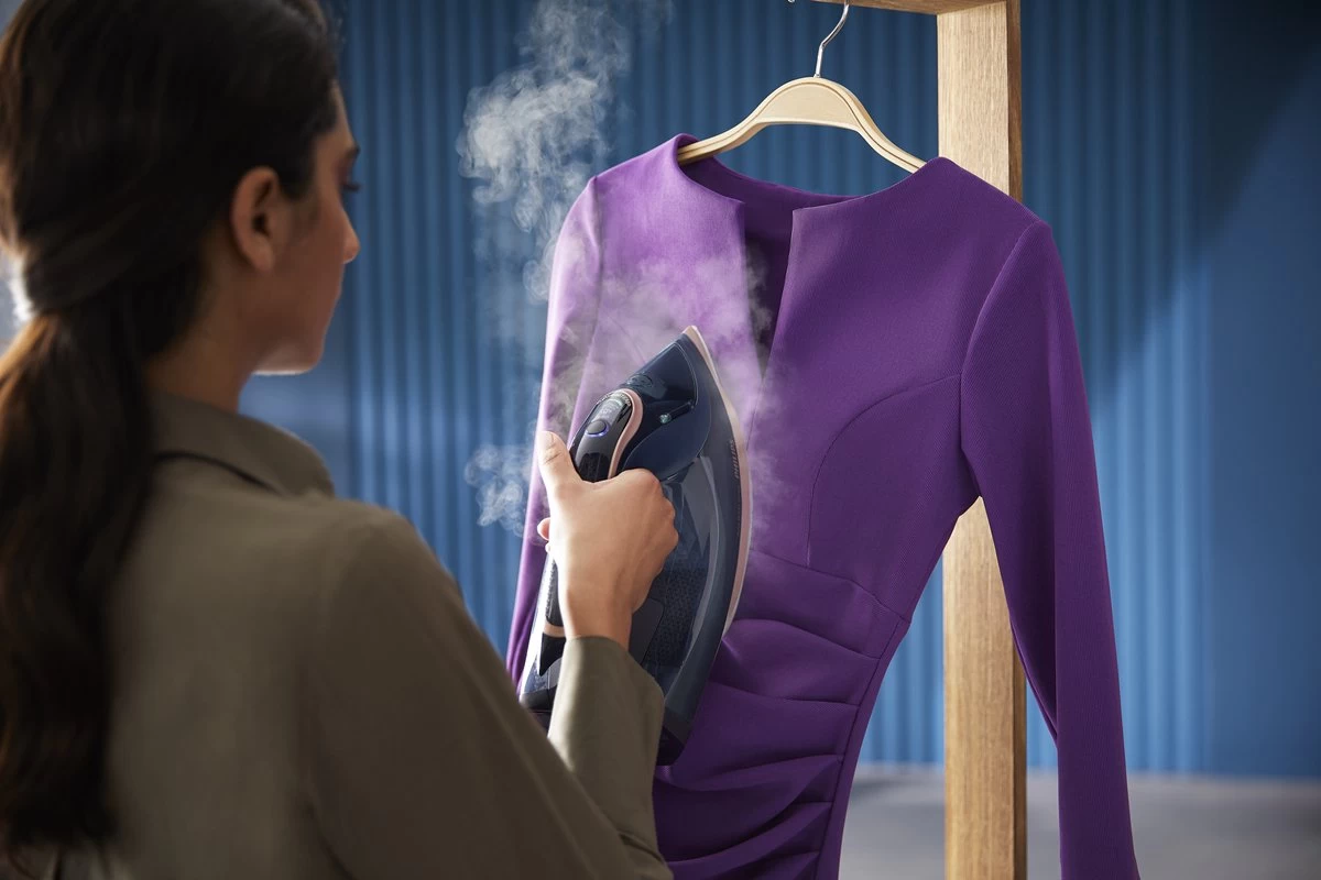 De verticale stoomfunctie kunt u kledingstukken op de hanger opfrissen en kreuken uit gordijnen verwijderen terwijl ze hangen. Geen strijkplank nodig. - Strijk moeiteloos met intelligente automatische stoom
