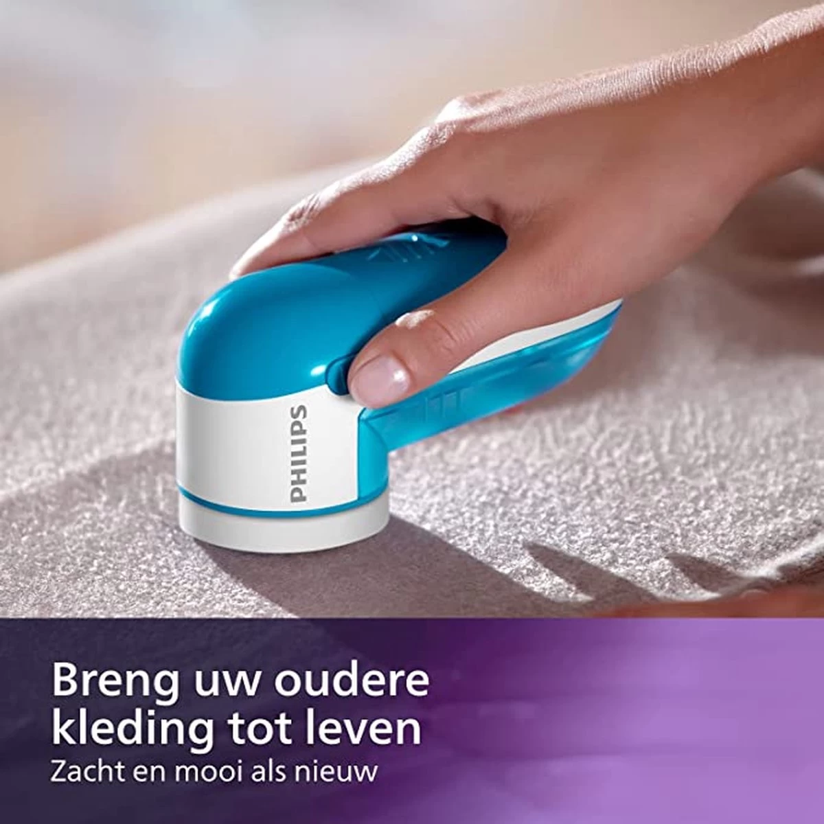 - In de verpakking: ontpiller, schoonmaakborstel, beschermkapje voor delicate stoffen, 2 Philips AA-batterijen