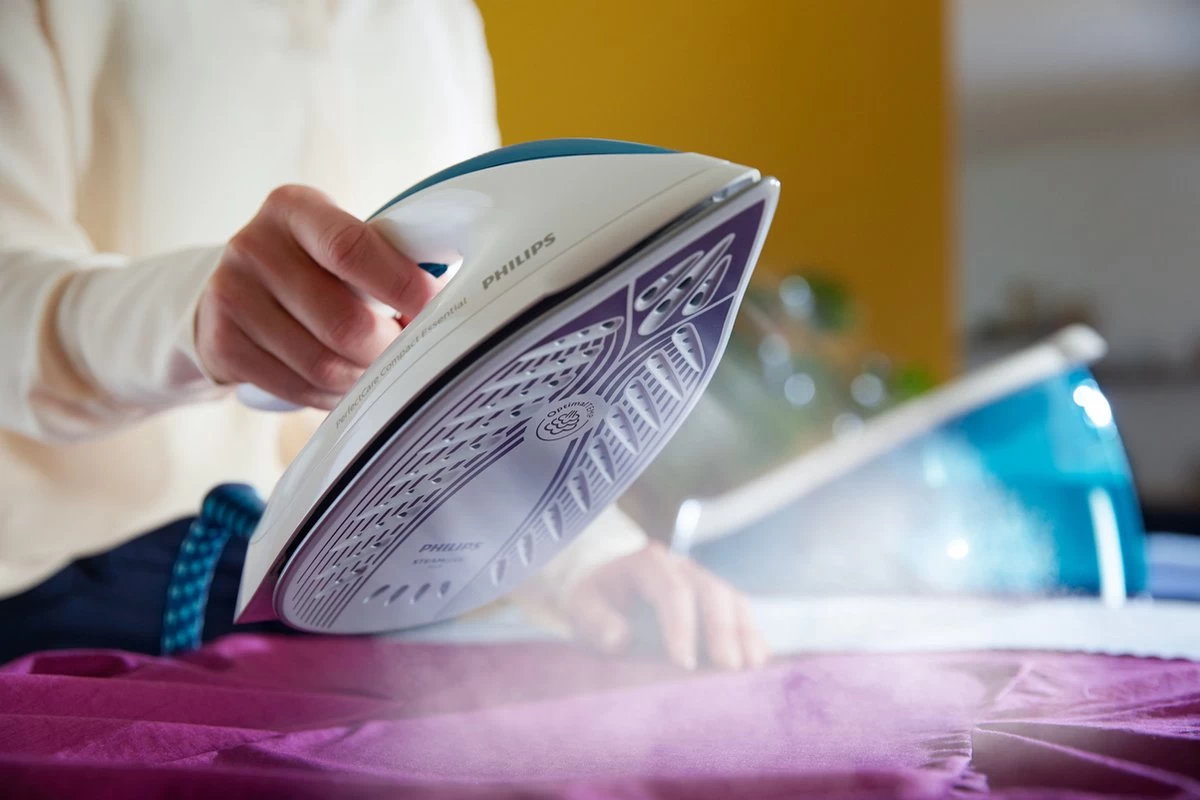 De krachtige en continue stoom van de Philips PerfectCare Compact Essential GC6840/20 stoomstrijkijzer werkt sneller dan een stoomstrijkijzer met OptimalTEMP-technologie zodat u de temperatuur of stoominstellingen niet meer hoeft in te stellen. Compact en lichtgewicht om eenvoudig op te bergen.