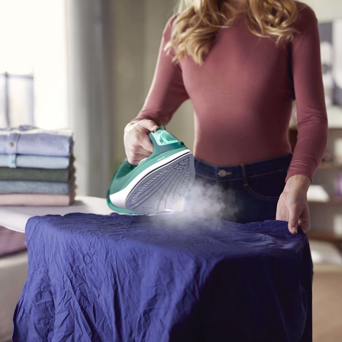 De krachtige stoomstoot van de Philips DST3030/70 levert extra vermogen om dieper in de stof door te dringen en de hardnekkige kreuken eenvoudig te verwijderen. Continue stoom tot 40 g/min Sterke en consistente stoomproductie om kreuken sneller te verwijderen.