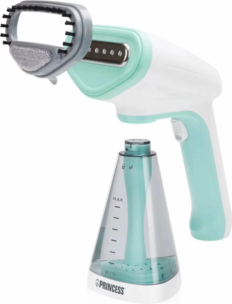 De Princess Kledingstomer heeft een afneembare borstelkop die je kan gebruiken om dikkere stoffen zoals mantels en bekleding te stomen. Fijn als je je winterjassen weghangt voor de zomer of juist weer terug in gebruik neemt. De borstelkop heeft ook een speciaal gedeelte dat stof en pluisjes verwijdert.