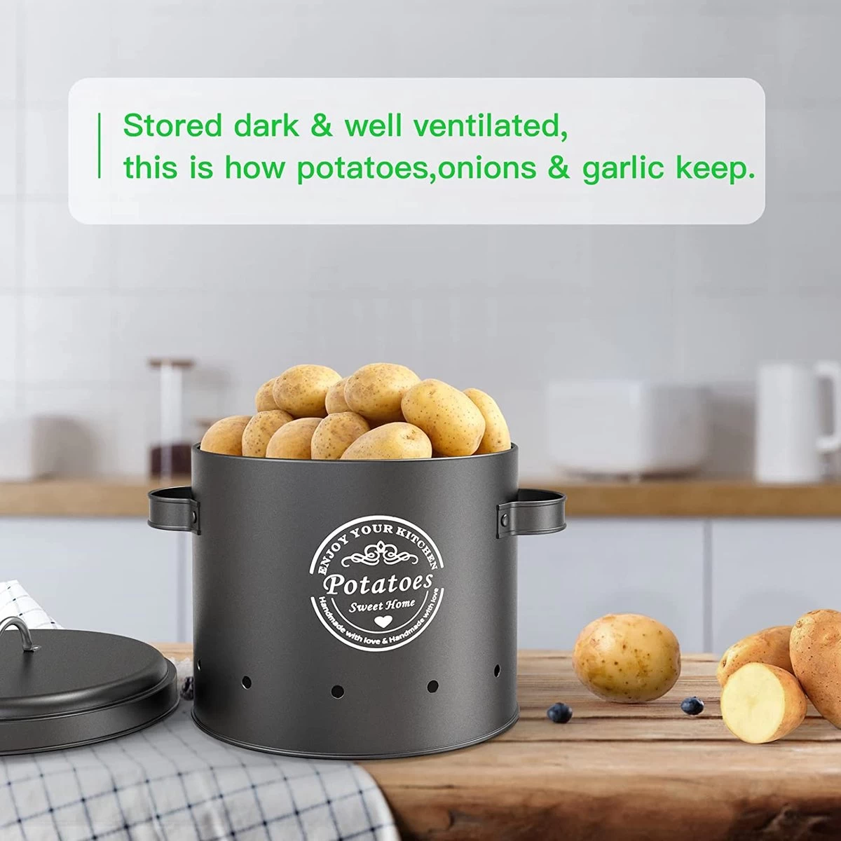 Maak je geen zorgen, onze voorraaddozen voor de keuken beschermen aardappelen, uien en knoflook goed en langer.