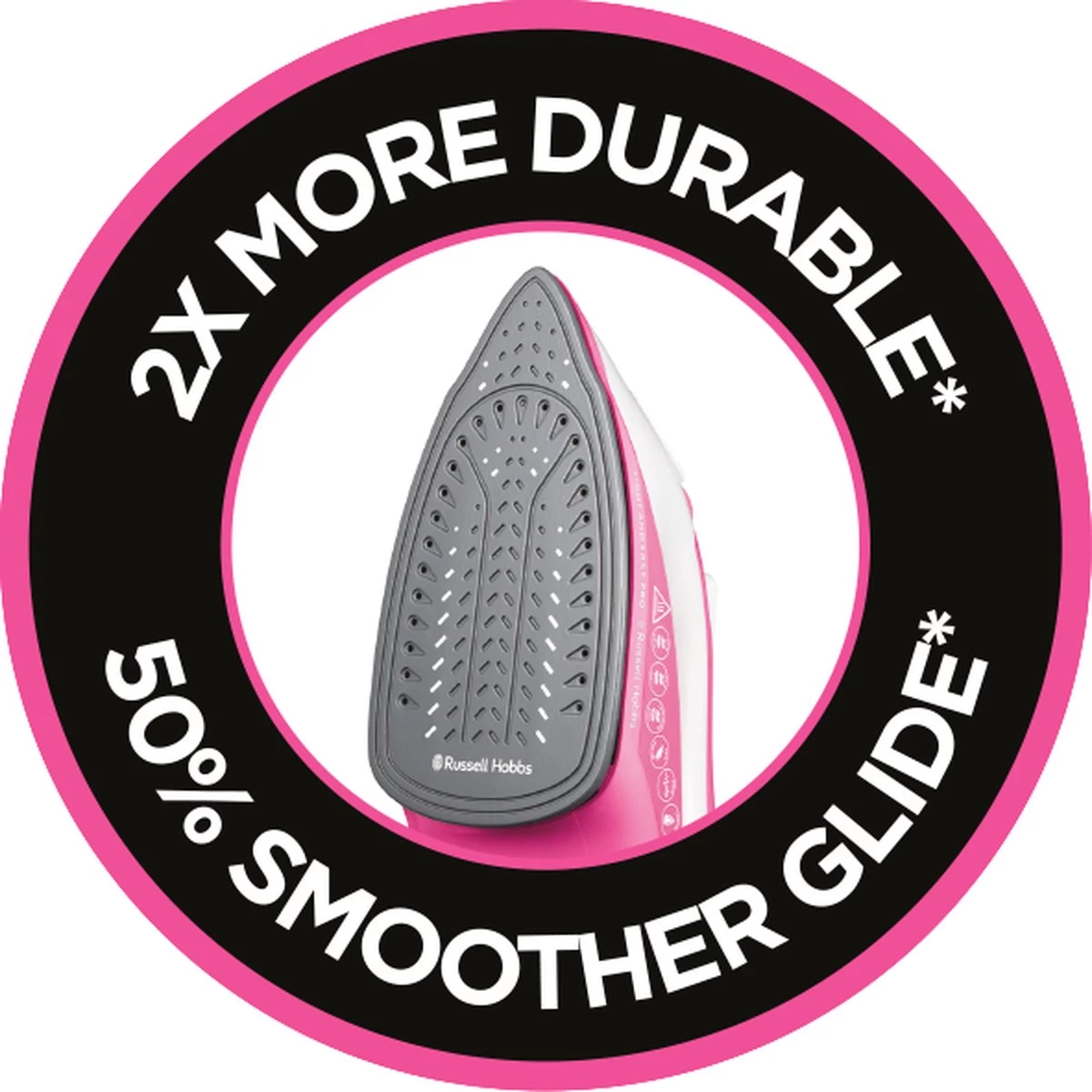 De verbeterde strijkzool glijdt 50% soepeler*, blijft niet plakken en is 2x zo duurzaam*.