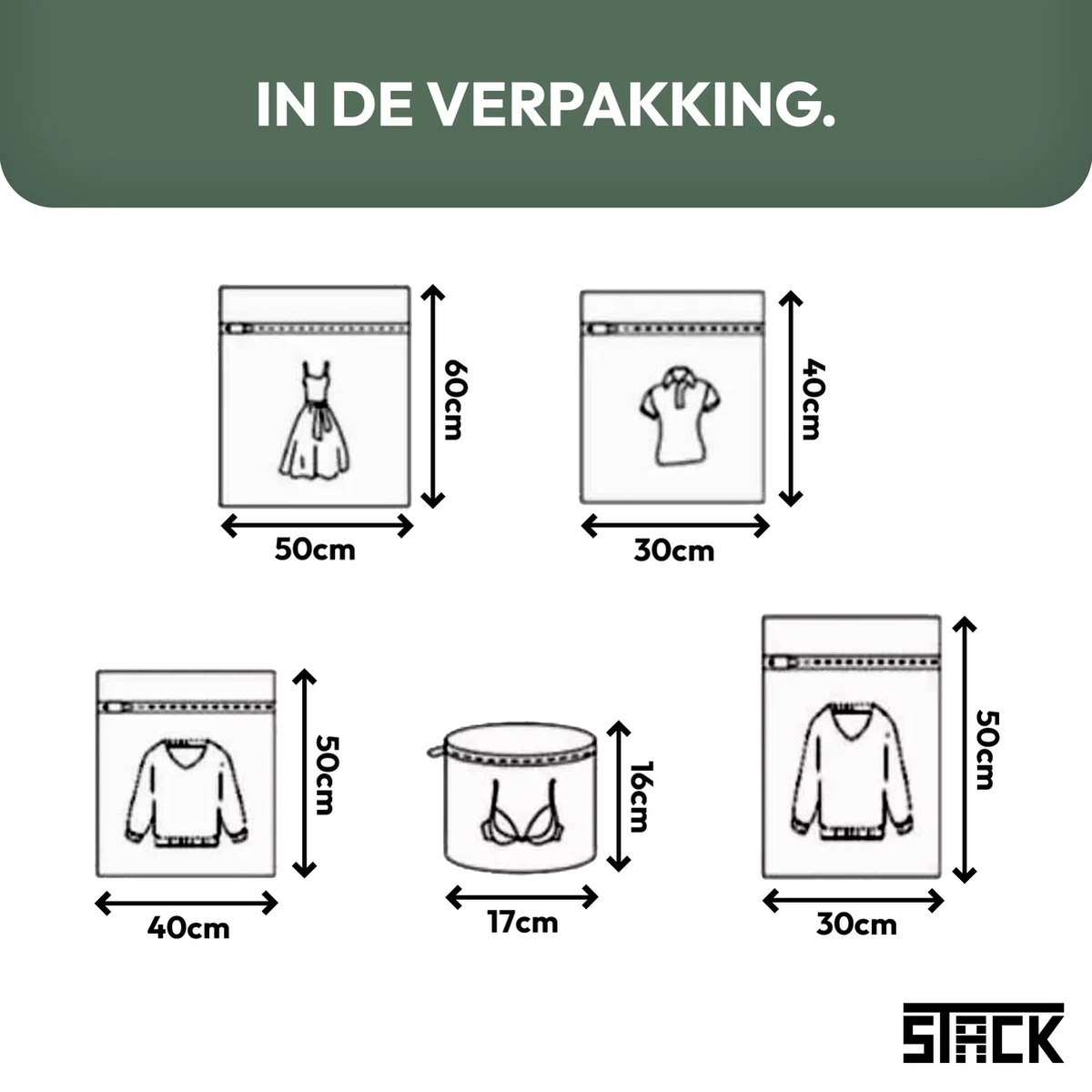 Wasgoed gesorteerd en zonder schade wassen? Met de 5-delige STACK Waszakken set was je als een expert.