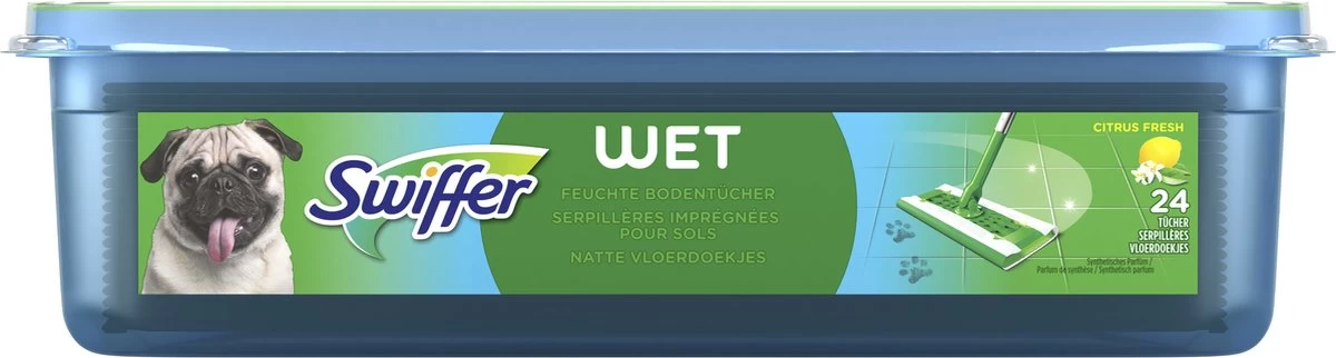 Wie zegt dat Swiffer alleen voor droog schoonmaken is? Swiffer heeft ook vochtige doekjes met een krachtig vuiloplossend schoonmaakmiddel dat het vuil van oppervlakken verwijdert en vasthoudt. Houd je vloeren schoon en laat ze heerlijk ruiken met een unieke schoonmaakvloeistof die hardnekkige vlekken, vuil en verontreiniging oplost en diep in het doekje opslorpt, zodat het schoonmaken van tegelvloeren of linoleum vanzelf gaat. En om hardnekkige vlekken te verwijderen, kan je de kop omkeren en de vlekken schrobben met de groene schrobstrook. Doordat hij zo vlak is kan je plekken schoonmaken die je niet kan bereiken met andere vloerreinigingssystemen (onder banken, bedden, koelkasten en vaatwassers…). Ja, je Swiffer Vloerreiniger werd opeens een 2-in-2 tool: gebruik met de droge doekjes om het stof te vangen en met de vochtige dweildoekjes om schoon te maken. Ze zijn zelfs geschikt voor gebruik op houten vloeren. Gebruik de Swiffer Vloerreiniger vochtige doekjes niet op onbehandeld, geolied of geboend parket, op onbehandelde natuursteen of tapijten.