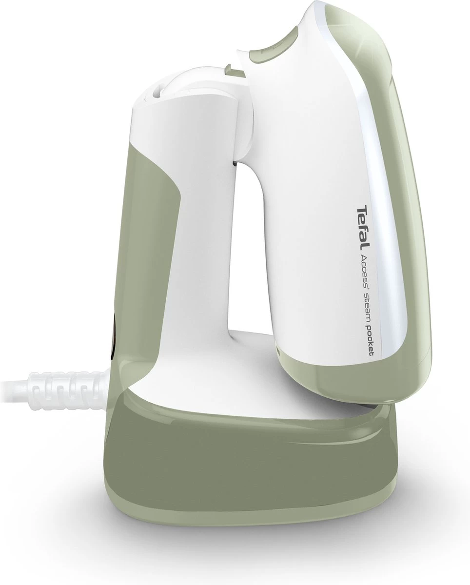 De snelste hand kledingstomer van Tefal met een ultra-compact design. De kledingstomer is perfect voor op reis en in het dagelijks gebruik. De Access Steam Pocket DT3053 is een ultra-compacte kledingstomer die je kledingverzorging elke dag gemakkelijk maakt. De exclusieve opvouwbare kop zorgt voor ultiem gebruiksgemak, terwijl het lichtgewicht frame zorgt voor probleemloos stomen. Bovendien is hij 2x kleiner dan voorgaande modellen, wat betekent dat opbergen en reizen nog makkelijker gaat! Geniet van de razendsnelle opwarmtijd van slechts 15 seconden. Perfect voor snelle last-minute touch-ups om er op je best uit te zien.
